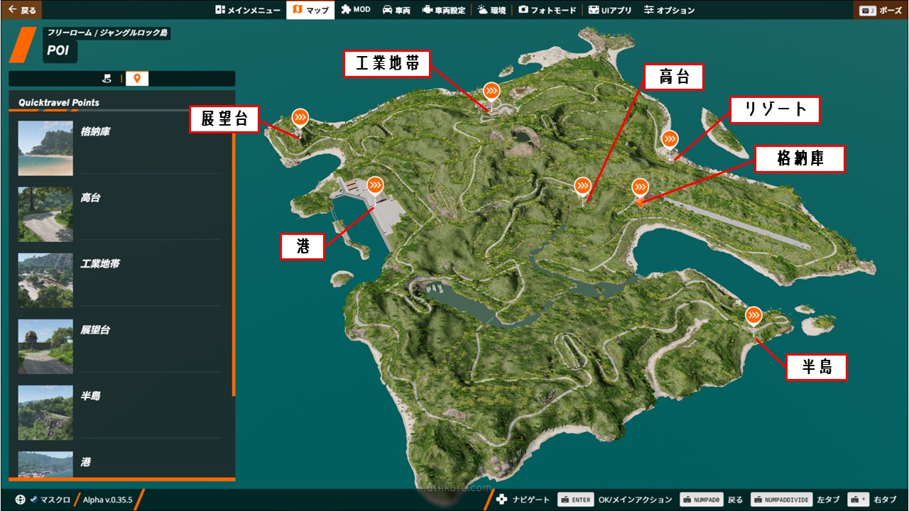 | 説明 | 太平洋に浮かぶジャングルに覆われた常夏の島。様々な道やトレイルも走行できます。 |