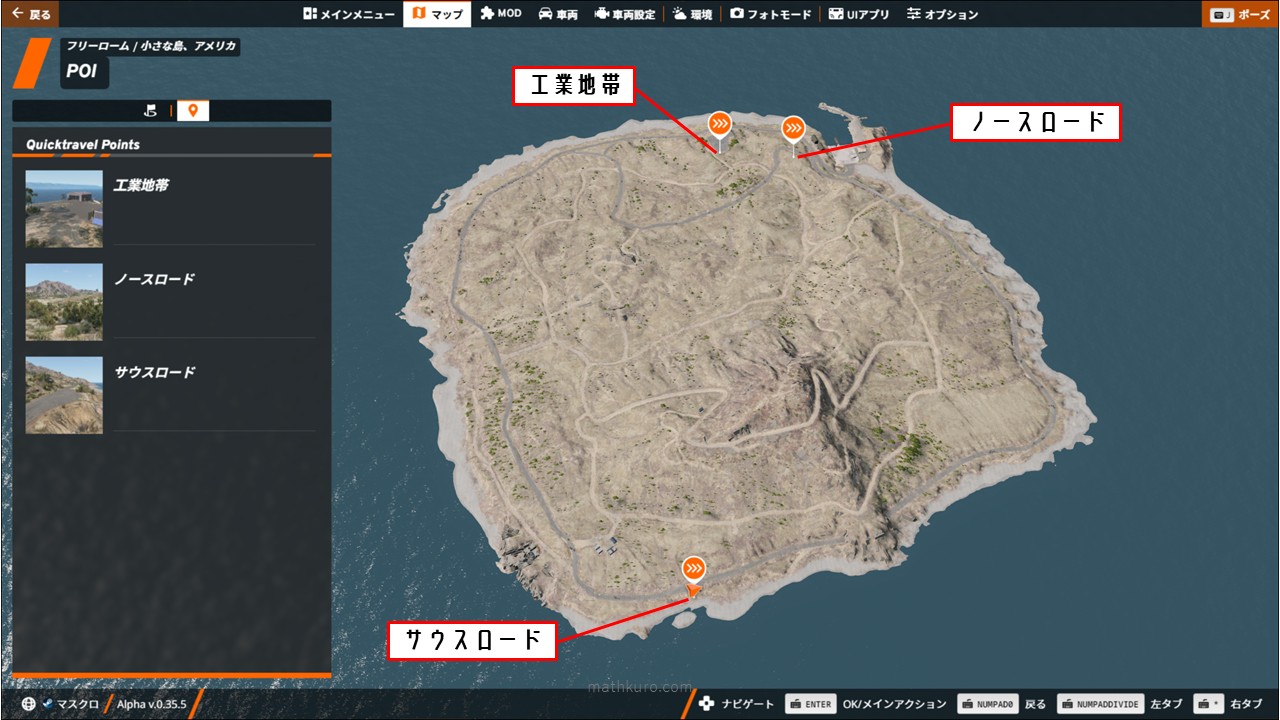 | ノースロード | デフォルトスポーン地点、港最寄りの道路からスタート |